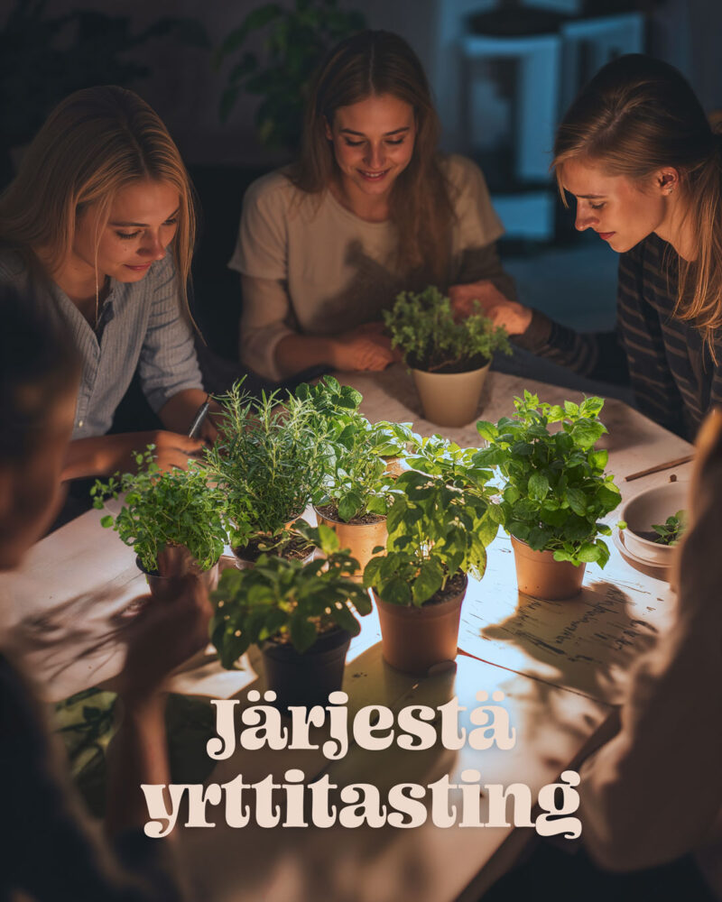 - Tarjoa yrtit maisteluun yksi kerrallaan. Maistelu on hauskaa myös silmät peitettynä!