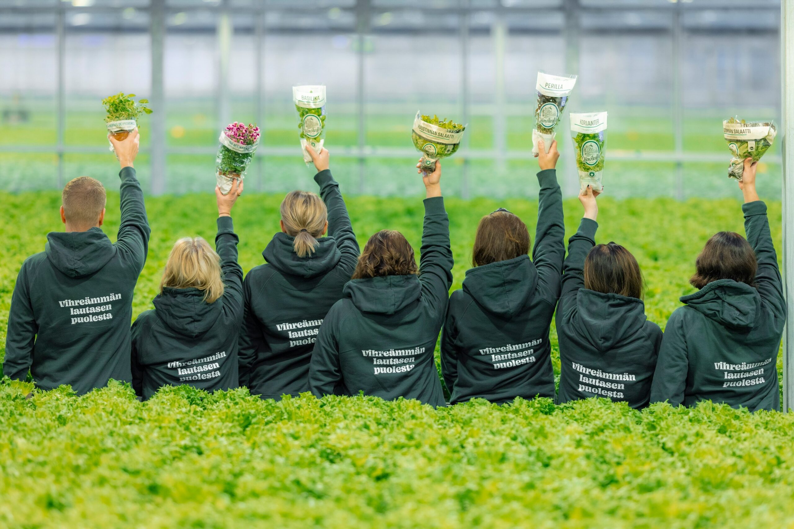 Mittakaava on valtava: kasvihuoneiden viljelypinta-ala on noin 43 000 neliömetriä. Kylvämme joka päivä noin 90 000 ruukkua yrttejä ja salaatteja. Päivittäin jopa kymmenen rekkaa vie vihreän kuorman ympäri Suomea.