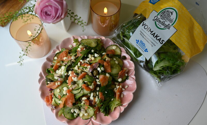 Tarjoa aasialaishenkinen nyhtökinkku höyrytetyn riisin ja Järvikylän Voimakas-salaattisekoituksen kanssa.