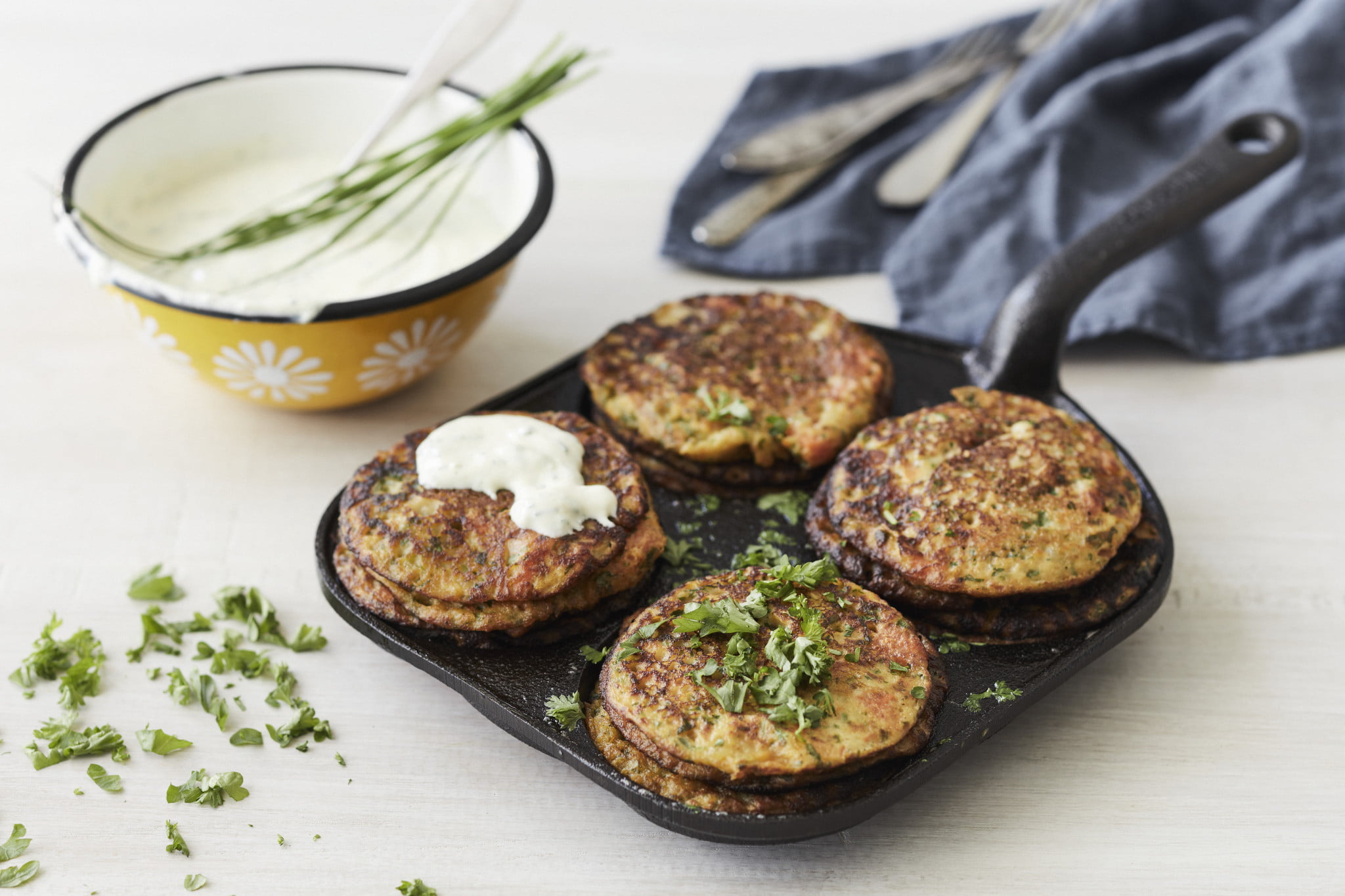 Kasvis-persiljaletut ja valkosipuliruohokastike yhdistää porkkanat, perunat, persiljan ja rucolan herkullisiksi pikkuletuiksi.