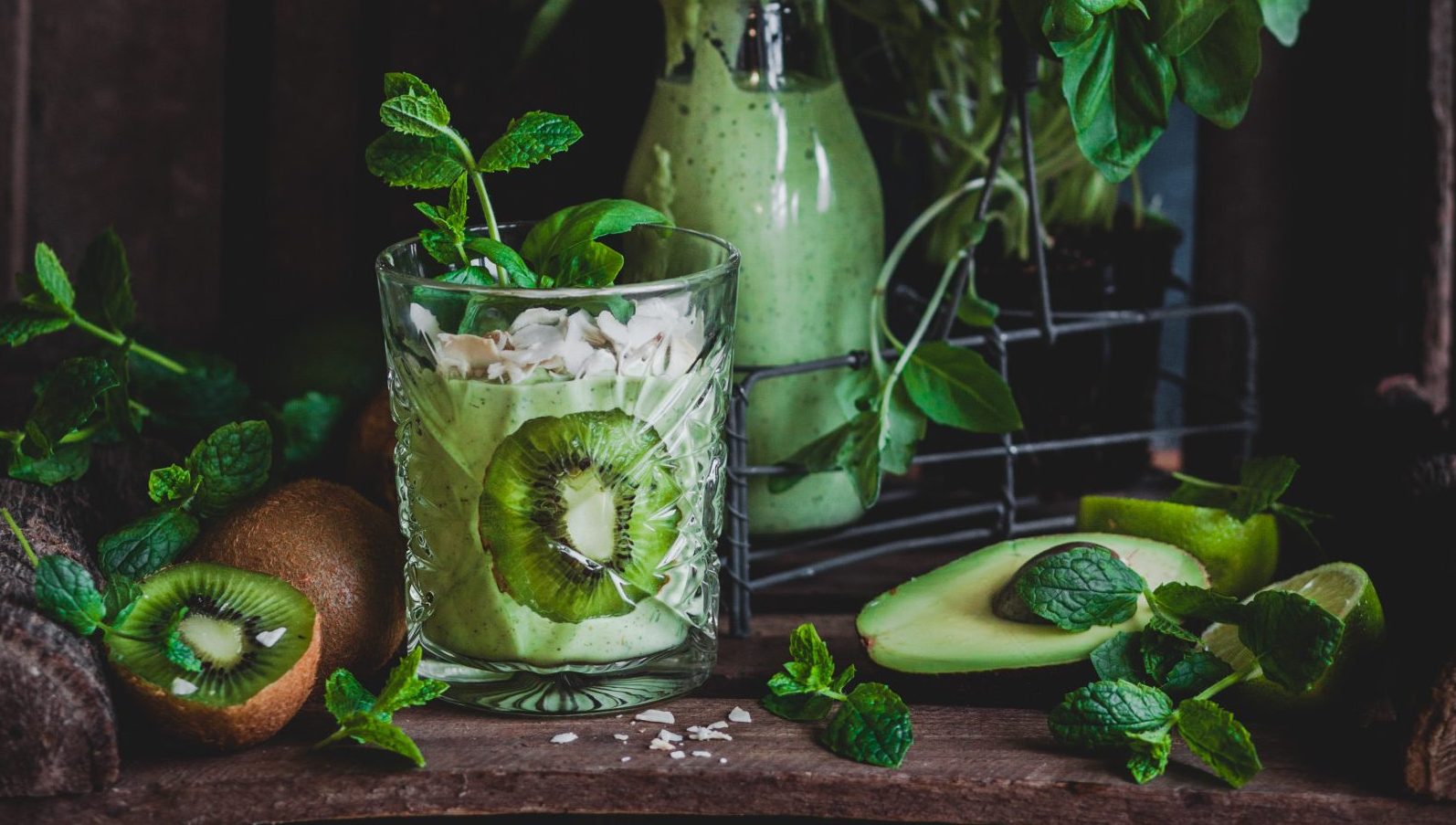 Raikas inkivääri-avokadosmoothie kanelibasilikalla ja mintulla. Valmista 5 minuutissa!