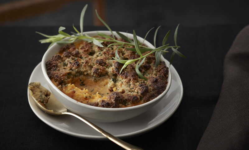 - Koristele pähkinöillä, granaatinomenan siemenillä ja yrteillä.