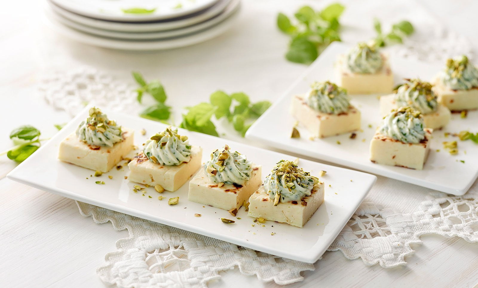 Minttu-leipäjuustoruudut ovat kiva tarjottava juhlapöydässä, brunssilla tai pikkunaposteluna. Sitruunarahkan ja tuoreen mintun yhdistelmä on raikas.