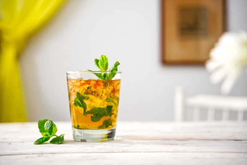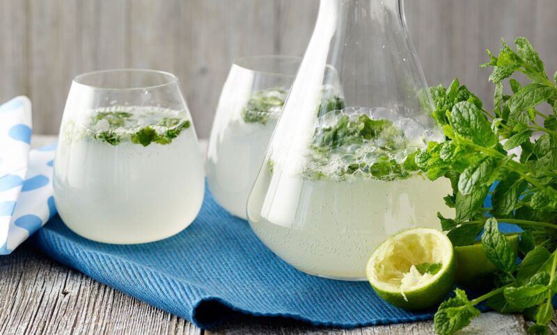 Raikkaan yrttisen juoman resepti vaikka kesän juhliin. Neiti kesäheinän kannu sisältää basilikaa, minttua ja sitruunamelissaa.