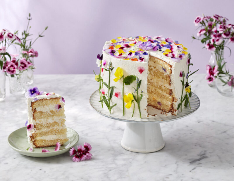 Järvikylän orvokki ja laventeli nostavat tunnelman kakkujen, jälkiruokien ja juomien koristeena. Kukita myös salaatit, suolaiset suupalat tai ruoka-annokset juhlan kunniaksi. Katso myös kolme vinkkiä kukkien käyttöön koristelussa.