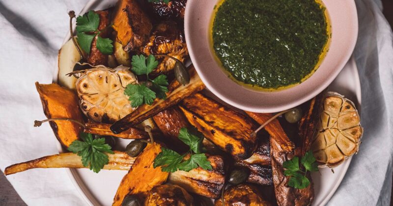 Grillatut varhaiskaalilohkot saavat makua caesar-kastikkeesta, johon valkosipuli kuuluu olennaisena osana. Kokeile perinteisten kynsien sijaan Järvikylän Valkosipuliruohoa, joka tekee kastikkeesta pehmeän ja raikkaan makuisen.