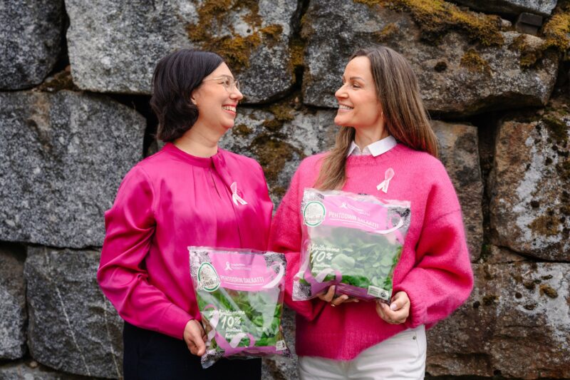 Pehtoorin salaatti on vuosi toisensa jälkeen yksi suosituimmista Roosa nauha -tuotteista ja syksyisin kuluttajat osaavat jo odottaa Famifarmin vaaleanpunaisia salaattipakkauksia. Nyt Caroline Grotenfelt-Fyhr ja Kati Kortelahti avaavat onnistuneen yhteistyön saloja.